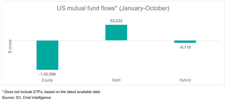 The US witnessed its highest outflows from equity funds since January 2025, with investors turning cautious and shifting to debt funds
