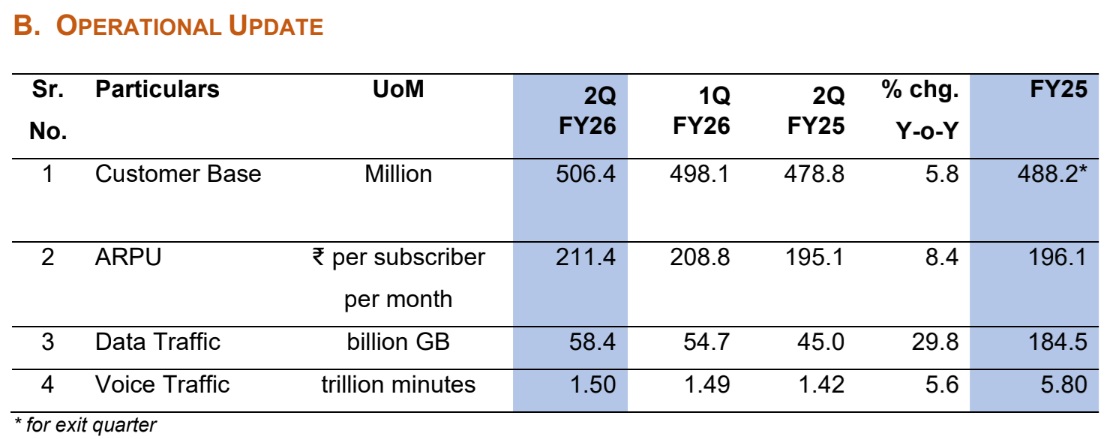 Jio subscriber base crossed the milestone of 500 million; Total subscriber base of over 506 million as of Sep’ 25