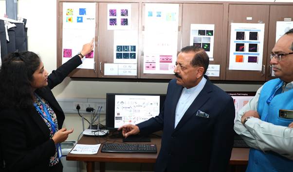During his visit to the Quantum Lab, the Minister reviewed India’s first series of indigenous quantum sensing and imaging platforms that signal a major leap in the nation’s R&D capabilities. He was briefed on QMagPI, the country’s first portable magnetometer capable of detecting ultra-low magnetic fields at the nanotesla (nT) scale. Developed using nitrogen vacancy (NV) centers-atomic-scale defects in diamond, the device enables high-precision magnetic sensing for strategic sectors, defense applications, mineral exploration, and scientific instrumentation. The Minister appreciated the team’s achievement in creating a compact, scalable system that places India among a select group of nations with such capabilities. He noted that the Department of Science & Technology (DST) has supported this advancement, enabling translation of deep science into real-world applications.