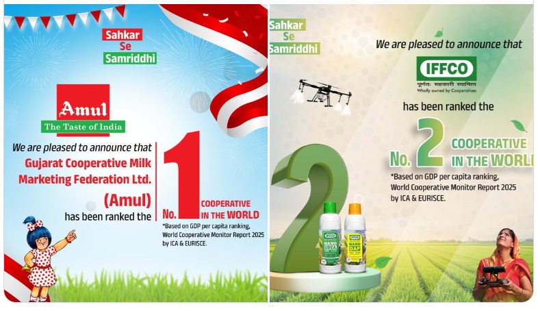 Mumbai, November 4, 2025: Two of India's leading cooperatives, Amul and IFFCO, have secured the 1st and 2nd ranks in the global ranking for cooperatives, respectively.