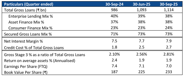 · Total Gross Loans stood at Rs 1,11,409 crore as on September 30, 2025 compared to Rs 98,624 crore as on September 30, 2024, a growth of 13.0%.
