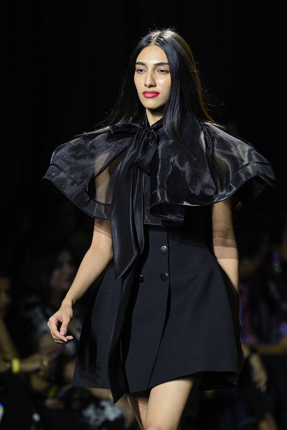 Ashish’s collection was for opulent occasion wear with a language in the colour black, at its core. Displaying cultural jackets, sweeping trousers and fluid gowns, there was a clear play of colour, shadow and texture. The monochrome palette highlighted the grandeur of the creations, while the sharp tailoring showcased restraint and quiet drama.