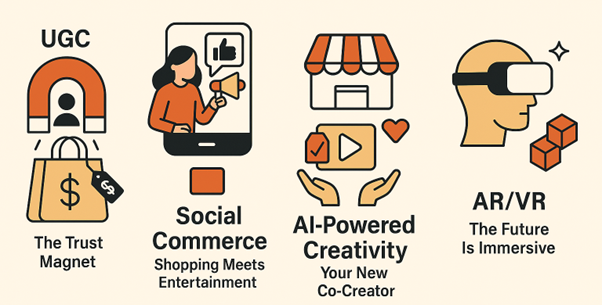 India’s creator economy is being reshaped by five big forces: authenticity-driven UGC (User Generated Content), the explosive rise of live and social commerce, AI-powered creation tools and immersive AR/VR experiences. UGC is now a global multibillion-dollar trust engine; live and social commerce are turning creators into real-time sellers; AI is becoming every creator’s silent co-worker; and AR/VR (Augmented Reality & Virtual Reality) is transforming content into full-blown experiences. Together, these trends show how creativity, technology and commerce are merging to redefine how India discovers, decides and shops online.