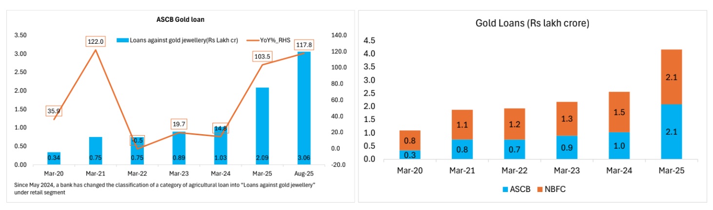 ❑ ASCB loans against gold jewelery has increased rapidly, over 100% in the year ending March 25