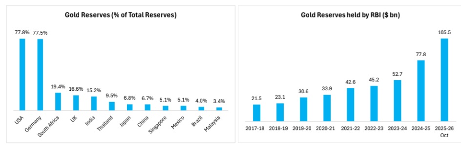 ❑ RBI held 15.2% of its reserves in gold in FY26 (till 10 Oct) compared to 13.8% in FY25 and 9.1% in FY24...