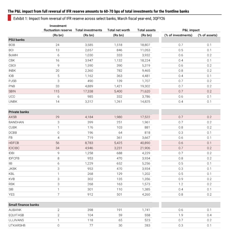 Recent regulatory changes offer cosmetic capital flexibility but little substantive relief for lenders. The proposed removal of the IFR reflects regulatory confidence in the prudential framework, yet the CET-1 uplift is immaterial (only ~1-3% of current CET-1), limiting its balance-sheet impact. While IFR release provides temporary headroom (~70 bps of the investment book) against MTM volatility, it does not change risk economics. Eased quarterly CRAR norms reduce disclosure volatility without altering audited full-year capital. Despite bond markets signaling a tightening cycle, we await clearer lender responses before revising growth or asset-quality assumptions.