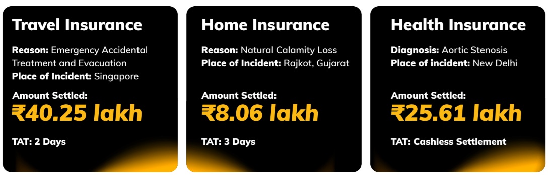 · Reimbursement Claims: Claims were settled in an average of 2.4 days, with the fastest processed in a remarkable 4.4 hours. (IRDAI TAT requirement*: 14 days)