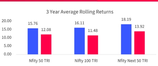 of delivering superior returns in 3,5,10 & 20 years to Nifty 50 TRI, and currently having better