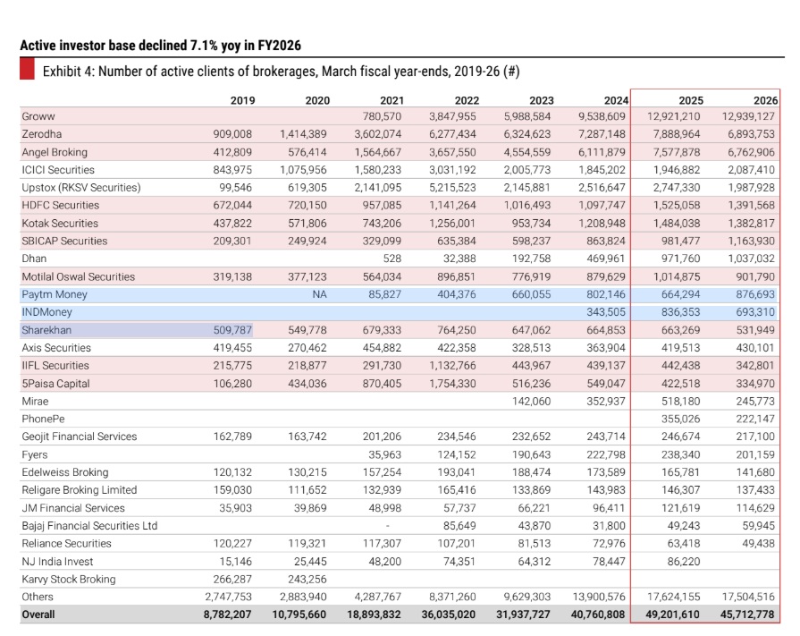 7% decline in the number of active clients of Indian brokerages in FY2026