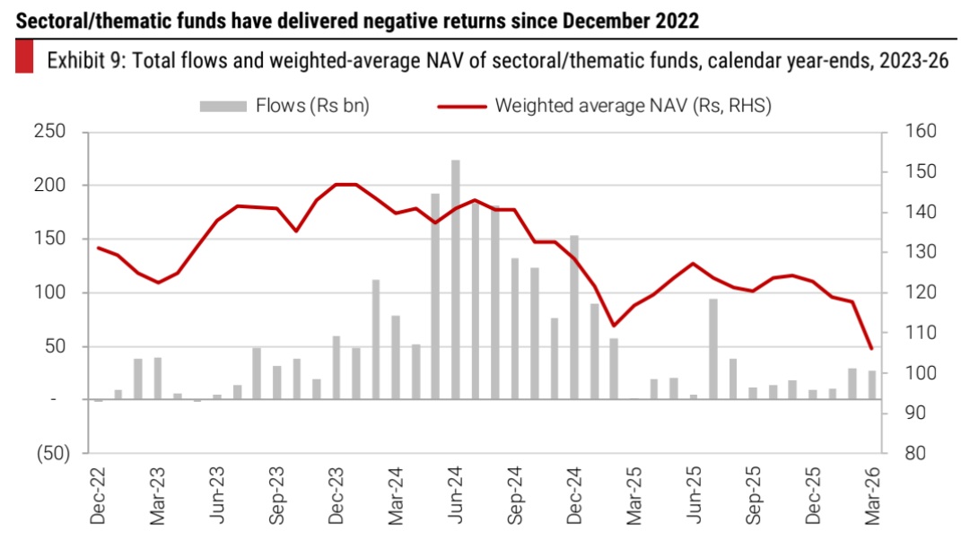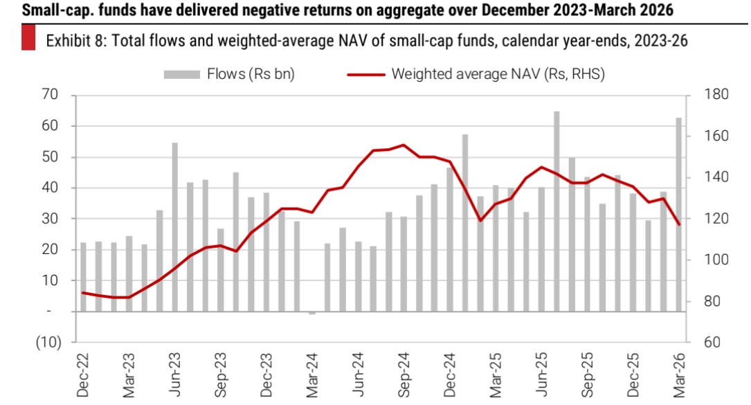 Our analysis of weighted-average NAVs of equity-oriented MFs shows that retail investors have made poor returns over July 2024-March 2026, even as the total flows in this period are 58% of the total flows mobilized by MFs in CY2022-26. The small-cap. and thematic funds have performed far worse than the overall equity funds in the past 21 months, while they captured a decent portion of the flows in this period.