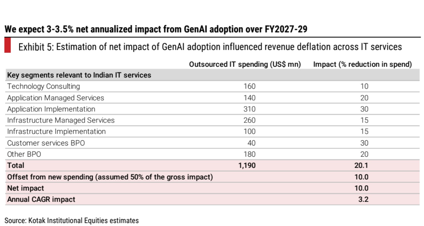 We expect an acceleration of opportunities, such as the modernization of legacy systems and data foundations, which will partially offset the revenue deflation impact. Enterprises might opt for higher custom application development as well. This can provide further offset. We expect the Mythos model—once released to the public—to accelerate GenAI-driven business use cases, providing large new opportunities to Indian IT and plugging the deflation impact arising from the adoption in services.