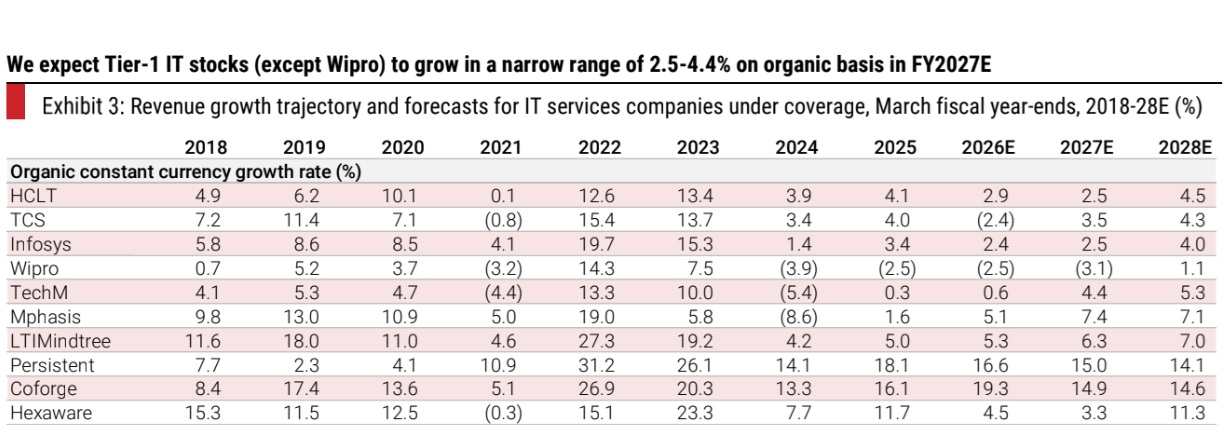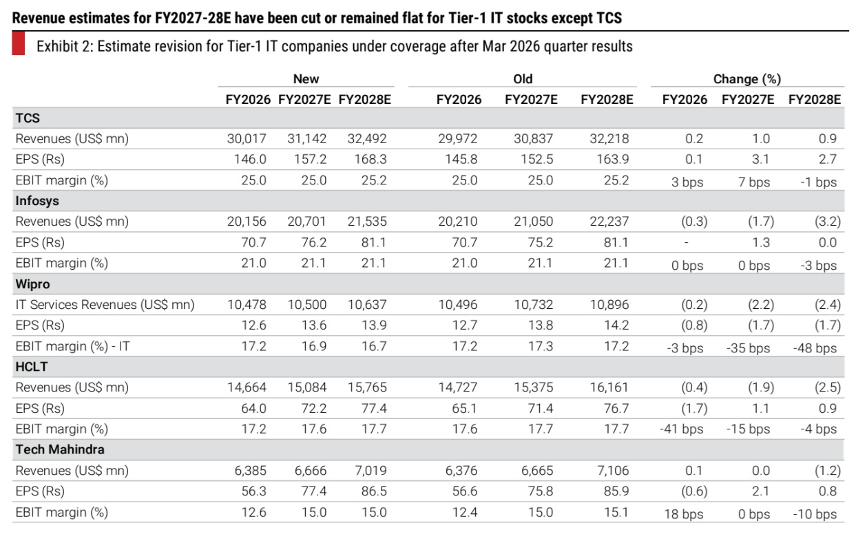 Mumbai, April 29, 2026: AI spending is crowding out IT services spend, even as total tech spending is growing at an accelerated pace. Every large player is operationally sound, eliminating share gains that cushioned performance for a few, a departure from the past 10-15 years, where at least two players had operational/execution challenges. AI deflation is becoming a reality (our base case is 3.5% for the industry), even as there is a timing lag in new programs resulting in weaker-than-expected growth guidance. Stock valuations are inexpensive for a sector that does not have much going for it. Mid-tier players are better-positioned than incumbents.