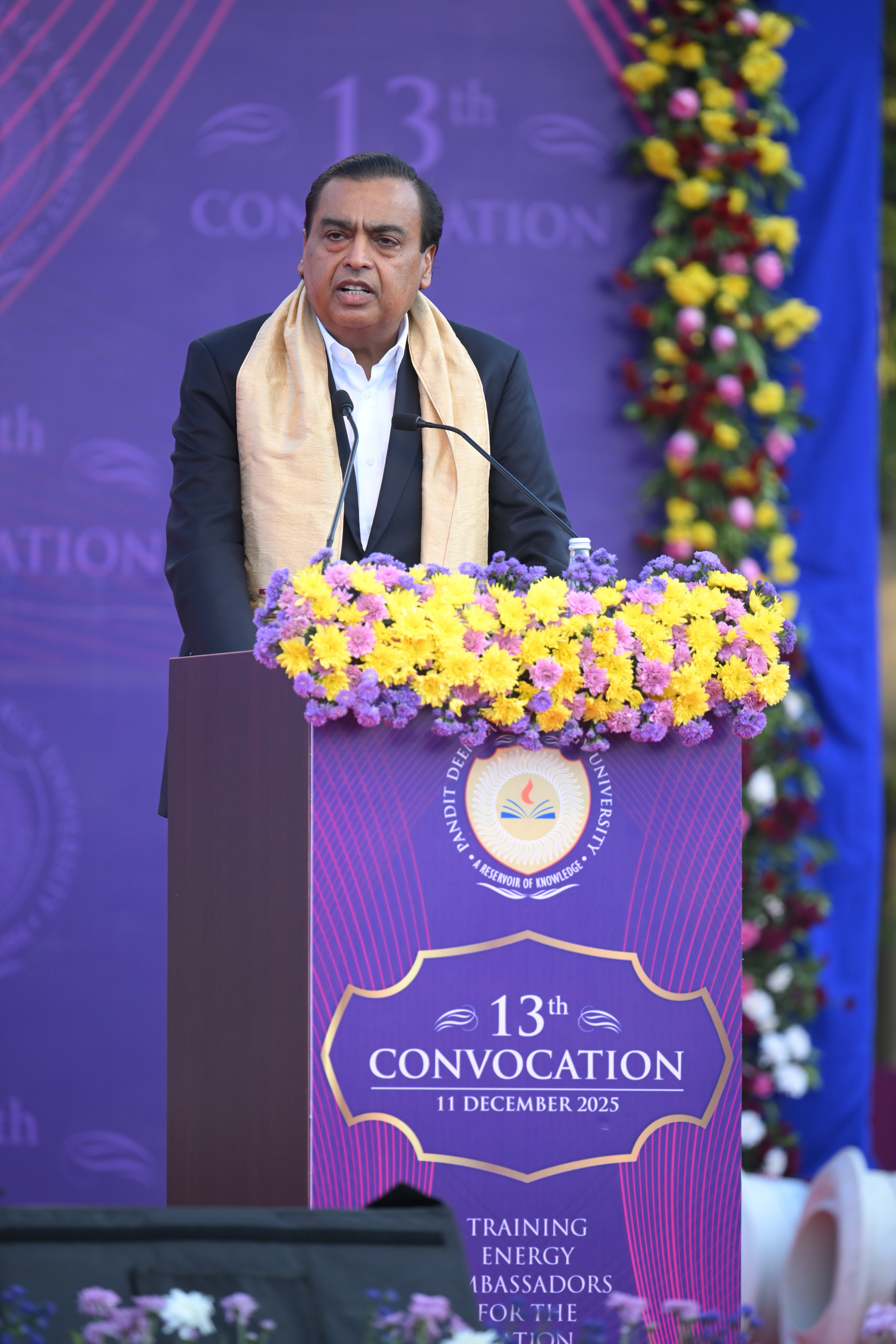 Mumbai, 11 December 2025: Shri Mukesh D. Ambani, Chairman and Managing Director, Reliance Industries Limited and President & Chairman of the Board of Governors, Pandit Deendayal Energy University (PDEU), delivered very inspirational speech at the 13th Convocation Ceremony held today at the PDEU Campus, Gandhinagar.