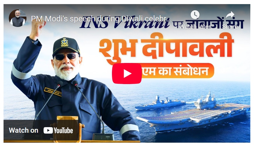 Recalling his night spent aboard INS Vikrant, the Prime Minister stated that the experience is difficult to put into words. He described the deep night at sea and the sunrise as making this Diwali especially memorable in many ways. From INS Vikrant, the Prime Minister extended heartfelt Diwali greetings to all 140 crore citizens of the country.