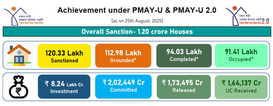 Pradhan Mantri Awas Yojana - Urban 2.0 (PMAY-U 2.0) was launched on 01.09.2024 to provide Central Assistance to 1 crore eligible urban families, ensuring that citizens of urban India enjoy an improved quality of life. Eligible families belonging to the EWS, LIG, and MIG categories, living in urban areas, and without a pucca house anywhere in the country can purchase or construct a house under PMAY-U 2.0