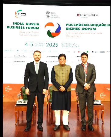 The India–Russia Business Forum was organised around the theme “Sell to Russia” and focused on pathways to expand India’s exports to the Russian market, with the objective of achieving more balanced bilateral trade, generating new opportunities for business and investment, and promoting shared, sustainable growth in both economies. Shri Piyush Goyal and Mr. Maxim Oreshkin led the thematic session. Shri Rajiv Ranjan Singh, the Minister of Fisheries, Animal Husbandry and Dairying, Shri Rajesh Agrawal, Commerce Secretary, Shri Amit Agrawal, Secretary, Department of Pharmaceuticals, Shri S Krishnan, Secretary, Ministry of Electronics and IT, Ms. N. S. Rao, Secretary, Ministry of Textiles, and other senior officials from the Government of India were part of the gathering. The Russian side was represented by Mr Maxim Reshetnikov, Minister of Economic Development, Ms Oksana Lut, Minister of Agriculture of the Russian Federation, Mr Maksut Shadayev, Minister of Digital Development, Communications and Mass Media and Mr Alexey Gruzdev, Deputy Minister of Industry and Trade, Senior business leaders from both sides who took part in detailed discussions that covered sectors such as energy, minerals, engineering goods, automobiles and transport equipment, agriculture and food processing, pharmaceuticals, information technology, digital services and financial solutions.