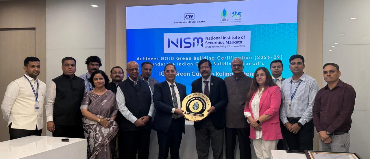 The plaque was handed over by K S Venkatagiri, Executive Director, CII Green Business Centre, acknowledging NISM’s commitment to sustainable infrastructure and environmentally responsible campus operations.