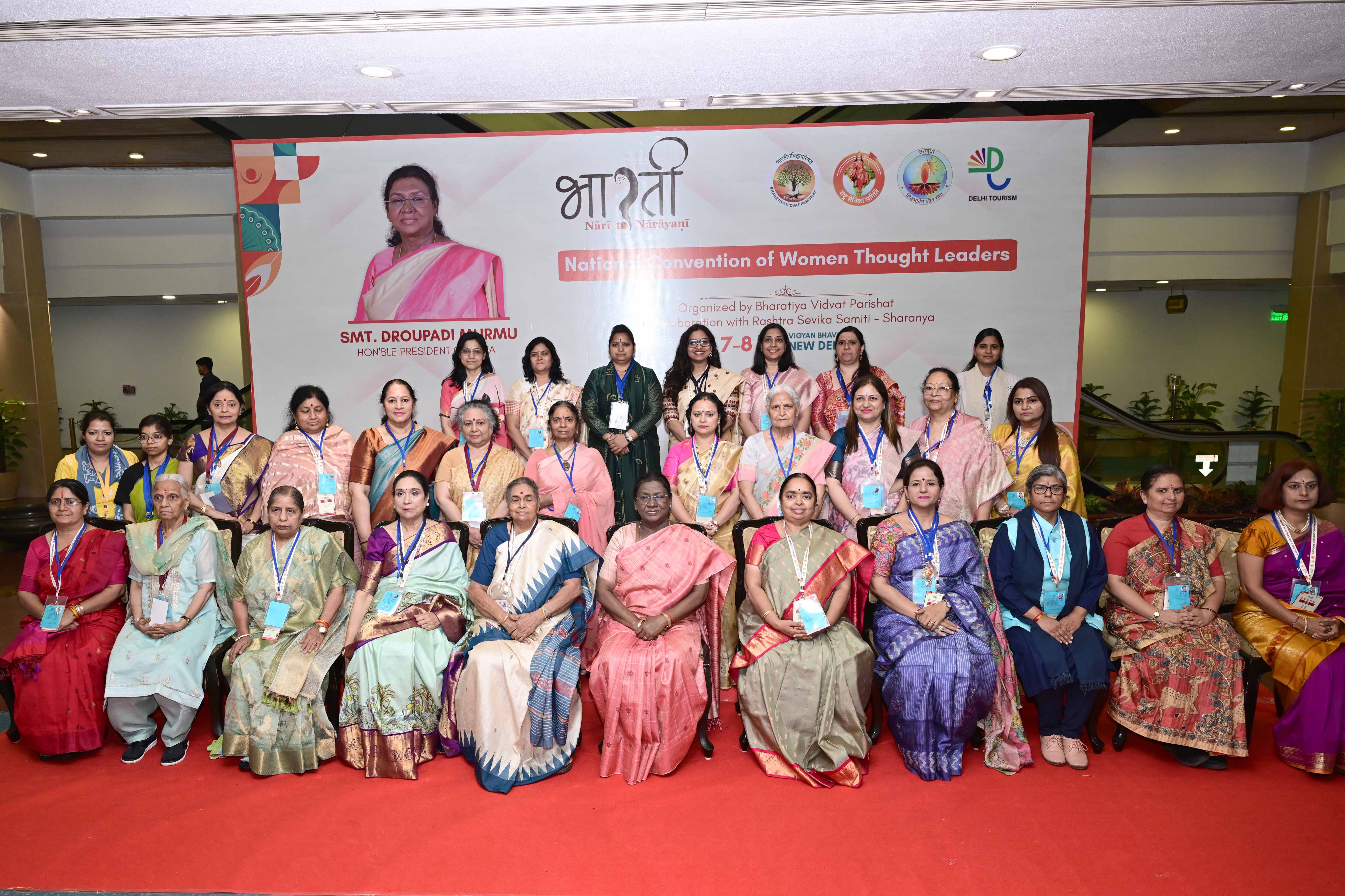 Mumbai, March 8, 2026: The President of India Smt Droupadi Murmu graced and addressed the National Convention of Women Thought Leaders, organised by Bharatiya Vidvat Parishat in association with Rashtra Sevika Samiti-Sharanya, in New Delhi today (March 8, 2026). The theme of the Convention was ‘Bhāratī –Nārī to Nārāyanī.’
