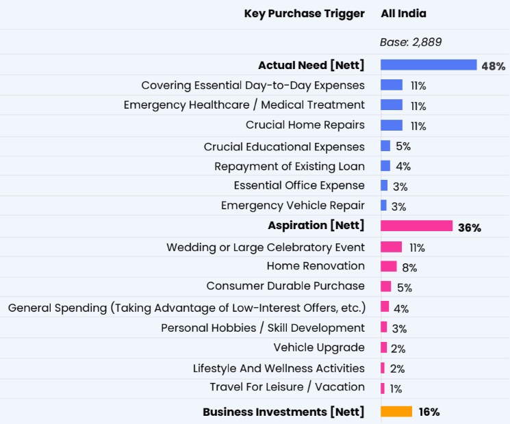 Along with medical needs, borrowers cited essential day-to-day essential expenses, urgent home repairs, and wedding or celebratory events as the most common reasons for availing personal loans.