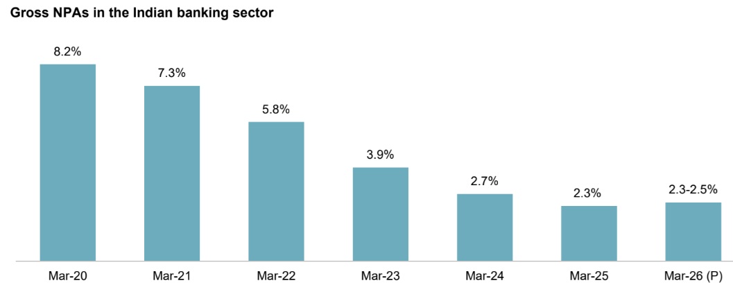 Mumbai, October 6, 2025: Gross non-performing assets (NPAs) of the banking sector have likely bottomed out and should remain in the 2.3-2.5% range by March 31, 2026 (see chart in annexure), close to the historical low of 2.3% as on March 31, 2025.
