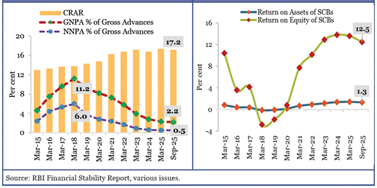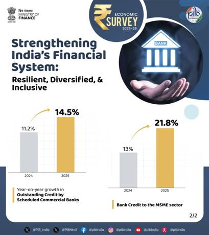 Mumbai, 28 January 2026: A significant improvement has been observed in the asset quality of Scheduled Commercial Banks (SCBs), states the Economic Survey 2025-26 that was tabled in the Parliament today by the Union Minister for Finance and Corporate Affairs Smt. Nirmala Sitharaman.. The gross non-performing asset (GNPA) ratio and net NPA ratio have reached a multi-decadal low level and record low level, respectively. At the same time, the capital-to-risk-weighted-asset ratio (CRAR) of the SCBs remained strong at 17.2 per cent as of September 2025.Further, the recovery rate in NPAs in SCBs has approximately doubled from 13.2 per cent in FY18 to 26.2 per cent in FY25. The recovery rate through the Insolvency and Bankruptcy Code, 2016 (IBC Code) has improved significantly as well.
