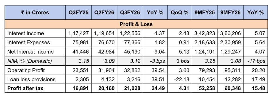 Operating Profit for Q3FY26 up by 39.54% YoY to Rs32,862 crores.